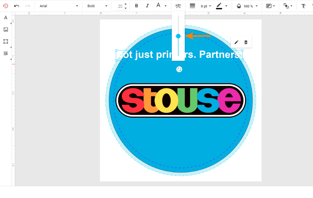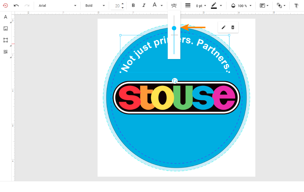 5. Adjust the slider to your liking, and your arched text is now complete.