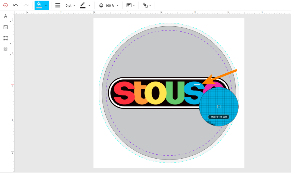 3. A crosshair cursor will appear with a circular window zooming in on individual pixels. Use this to select a color in your art that you would like your selected object to match.