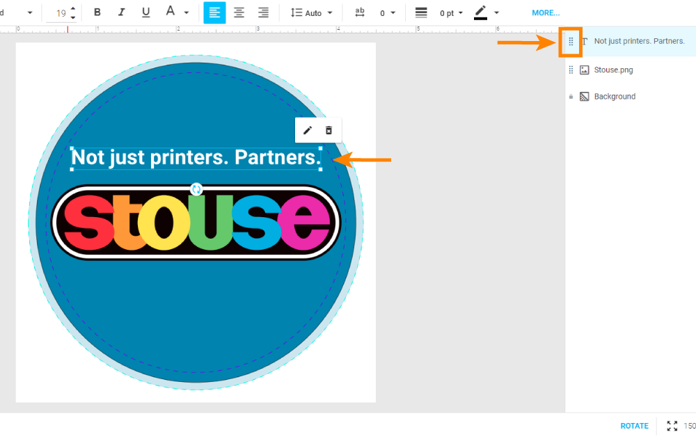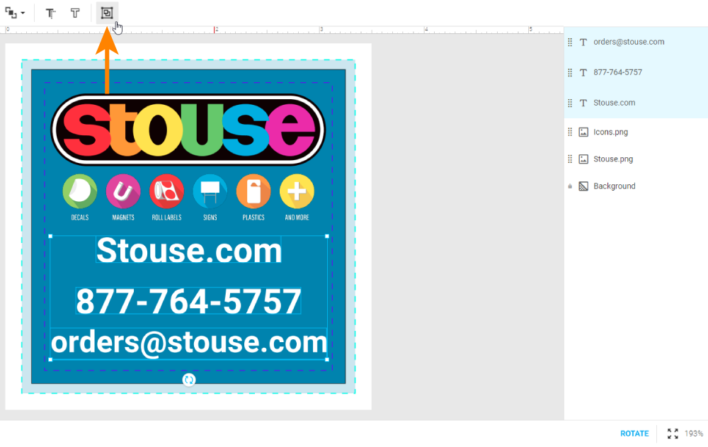 1. After uploading images and adding text layers to a template, you will sometimes need to reorder the layers to ensure that all of the elements show up properly. You can view your layer order to the right of the art tool.