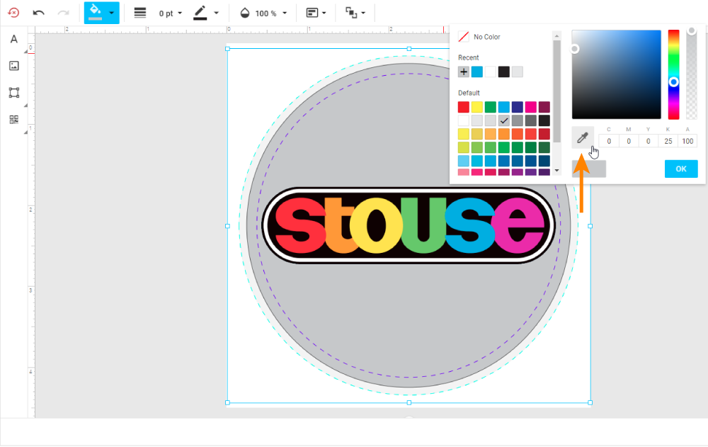 1. With your shape or text selected, click the select fill color icon or select text color icon in the top menu.