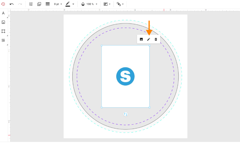 1. After you’ve uploaded your image in the design tool, click the pencil icon above the image to launch the image editor.