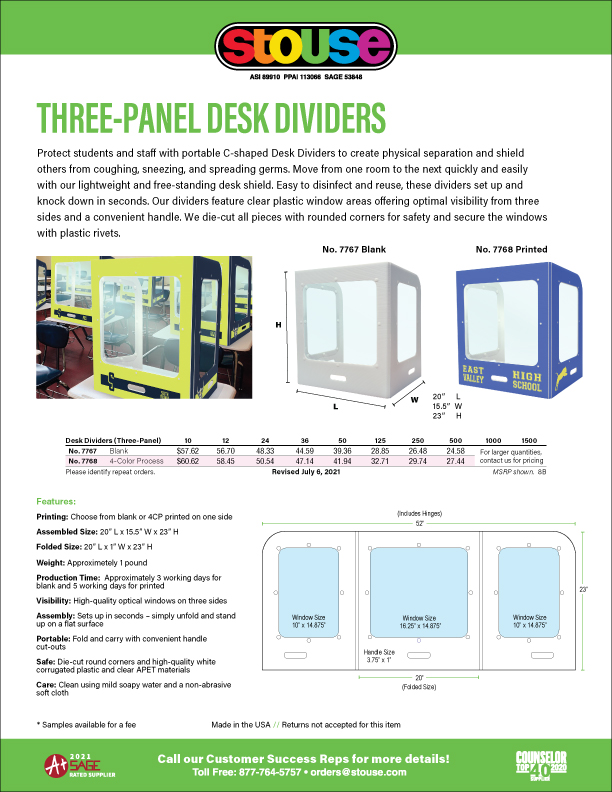 Even as we deal with this pandemic, our team is focused on your success. We are taking, producing, and shipping your orders. We recognize there is an increased need for items related to student desk dividers, restaurant take-out orders, signs and POP items for grocery stores, and products that illustrate proper hygiene techniques for healthcare facilities. We’re here to help you and appreciate our partnership. Keep scrolling to view markets that need products that communicate critical information today.
