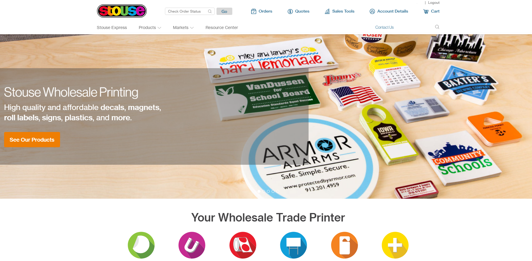 To quickly find the decal product page, click on the Products tab in the website header and a drop down of product categories will appear.
